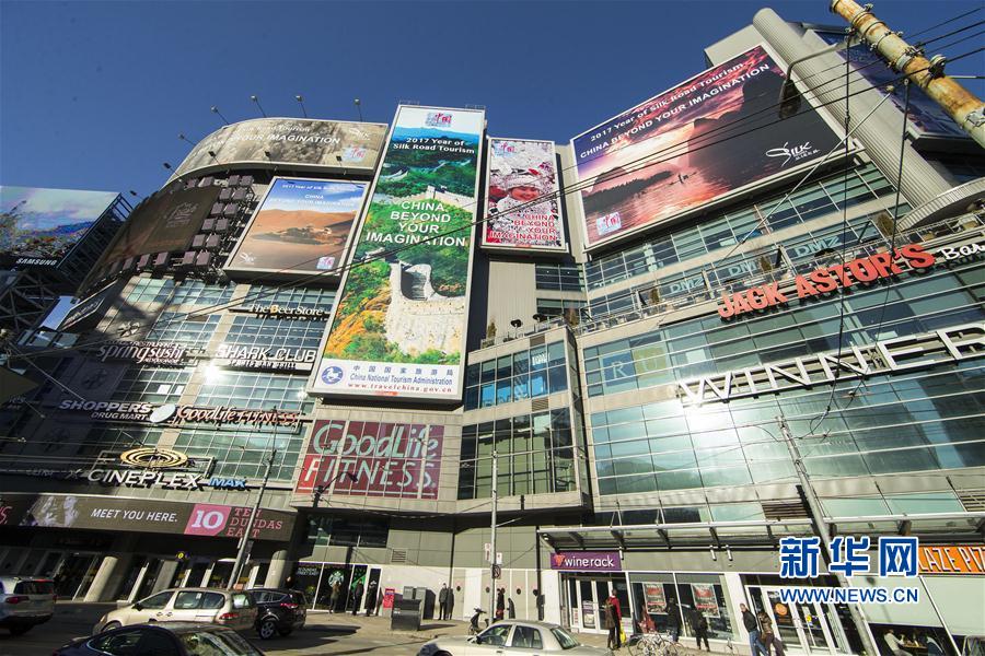 這是1月1日在加拿大多倫多市中心的鄧達(dá)斯廣場拍攝的“美麗中國——2017絲綢之路旅游年”主題宣傳廣告牌。從2016年12月26日起,由中國國家旅游局推出、以“美麗中國——2017絲綢之路旅游年”為主題的大型旅游宣傳廣告在加拿大多倫多市中心鄧達(dá)斯廣場亮相,向人們展示中國美麗而豐富的旅游資源。整個(gè)活動(dòng)將持續(xù)5周。新華社發(fā)(鄒崢攝)