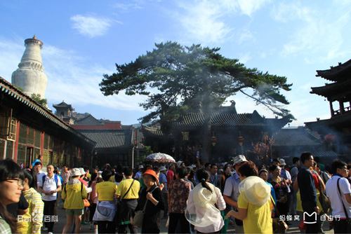 五爺廟也稱萬佛閣座落于臺懷鎮(zhèn),與大白塔相毗鄰,是通往顯通寺的又一條路徑。寺廟地勢開闊,當(dāng)年是大清歷代皇帝朝臺寢宴的行宮,俗稱“皇城”。“皇城”至萬佛閣之間,終年涌動著接踵而至的羲圣觀光者。