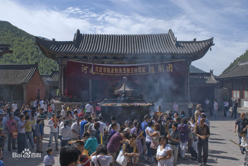 五爺廟里殿內(nèi)供奉的五爺是廣濟(jì)龍王文殊菩薩的尊稱,也是五臺山五頂文殊菩薩的化身,因而,這里是整個五臺山香火最盛的寺廟。而事實(shí)上,應(yīng)該說五爺其實(shí)就是文殊菩薩在臺懷本土化,世俗化的產(chǎn)物,它承擔(dān)起了民間俗神的職能,寄托著當(dāng)?shù)匕傩掌砼物L(fēng)調(diào)雨順、平安吉祥的愿望。也許正是因?yàn)槲鍫敱绕鹌渌鞔笏略豪锴f嚴(yán)肅穆的菩薩們更親近群眾,更符合急功近利的眾生心愿的緣故吧,小小的五爺廟,在善男信女們的心目中,它幾乎成了有求必應(yīng)的象征,上五臺山燒香的人大部分都是沖著五爺廟去的。在群眾心目中,他們不懂什么佛理,甚至不知道文殊菩薩,但只要一說五爺廟,則遠(yuǎn)近聞名,幾乎成了五臺山的一張名片。