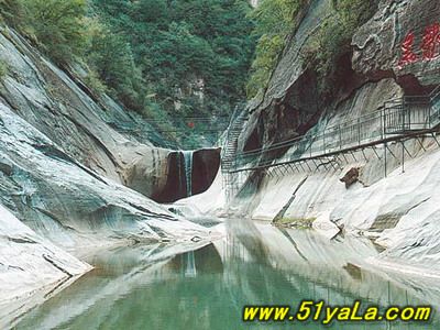 五指峽中的黑龍?zhí)端浅G宄?,終年流淌不息,在這個(gè)還有一個(gè)很有趣的說法,據(jù)說每到大旱的時(shí)刻人們就到這幾來求雨,但是求雨的人一定要是屬龍和蛇的,因?yàn)槭刈o(hù)著黑龍?zhí)兜氖且粭l黑龍。清澈的山澗為來到這里的人們帶來了快樂。游人可以泛舟水上,進(jìn)行皮筏漂流。