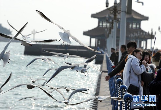 每到冬季,大批海鷗從西伯利亞等地飛臨青島越冬避寒,它們多集中停留在青島沿海一線,吸引眾多市民和游客前來觀賞和拍攝。新華社記者 李紫恒攝