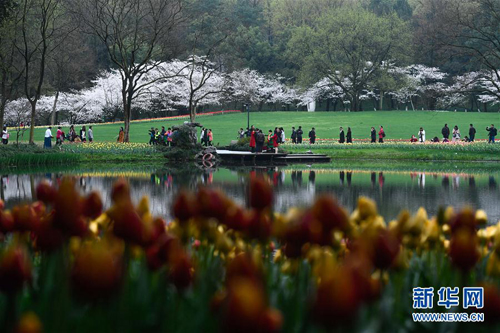 3月19日,市民和游客在太子灣公園游覽。近日,浙江省杭州市西子湖畔太子灣公園里的郁金香、櫻花競(jìng)相綻放,吸引大批游客和市民前來觀賞。 新華社記者 黃宗治 攝
