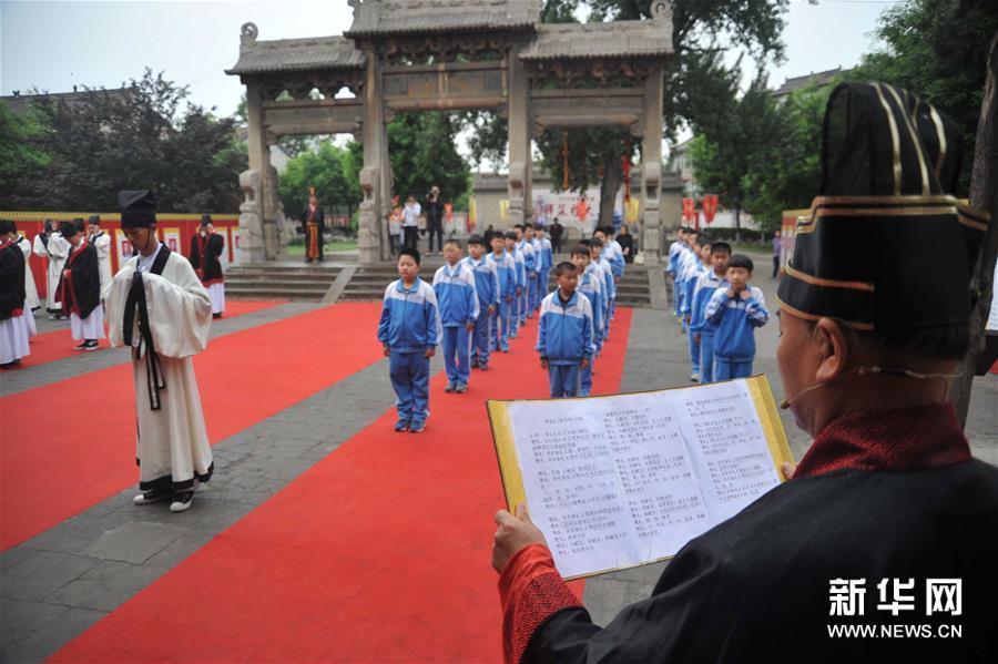 5月7日,山西運城新絳縣在當(dāng)?shù)厍旯懦墙{州的文廟首次舉行釋菜禮大典,以弘揚傳承尊師古文明,吸引了城鄉(xiāng)眾多群眾和中小學(xué)生冒雨觀典。新華社發(fā)(高新生 攝)