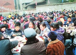 前來幫忙的親朋好友及村民們不說去“赴宴”或“喝酒”,也不說當今的流行詞“趕飯局”,而是稱“上事筵”或“在事筵上了”;服務于“事筵”的行業(yè),如廚師、鼓樂班、出賃家具及算卦先生等,則叫“走事筵”“串事筵”。由此可見,事筵雖然也是“宴”,但太原人所稱呼的一個“事”字,就使得這場宴席和一般的吃喝不同,是有著重要性的內(nèi)容和目的。舉辦者并非閑情逸致地擺席,而“上事筵”者也不是僅帶著一張嘴去混飯,雙方都是事筵中的參與者,都要在事筵中互動,并把事筵推向高潮。“事筵”二字聽上去實在、鄭重,不但讓人認可,且讓人人都有一份事筵上的職責感。