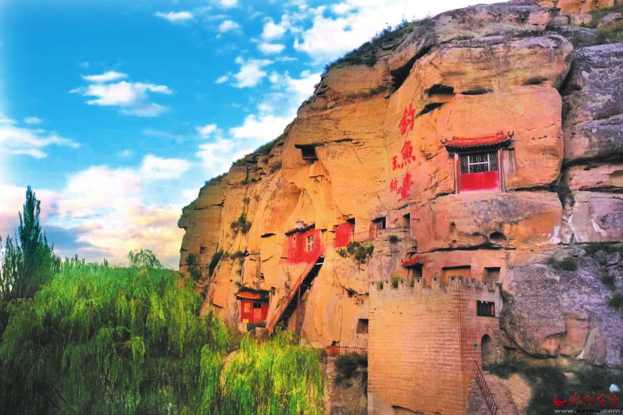 釣魚(yú)臺(tái)在石壁上鑿就,構(gòu)件懸空,門(mén)額上鐫刻著“天險(xiǎn)雄辟”四字。石窟呈方形,共有六處,形狀大同小異,內(nèi)設(shè)佛祖閣、潮音閣、藏經(jīng)洞、古韻軒、呂祖祠等佛教活動(dòng)區(qū)。從地形上看,釣魚(yú)臺(tái)恰好位于黃河由西向南將要拐彎的回旋之地,陳奇瑜之孫陳大德在《釣魚(yú)臺(tái)記》中曾對(duì)此地的優(yōu)美風(fēng)景進(jìn)行描述:“輕鰷出水,白鷗矯翼,釣艇往來(lái)碧波間……”遺憾的是,陳奇瑜還沒(méi)來(lái)得及居住,就遭時(shí)任山西巡撫的申朝紀(jì)陷害,以不遵剃發(fā)令、“留發(fā)不留頭”為由押解太原斬首,死后葬于保德縣黃河岸邊距釣魚(yú)臺(tái)不遠(yuǎn)處的林家溝村西。