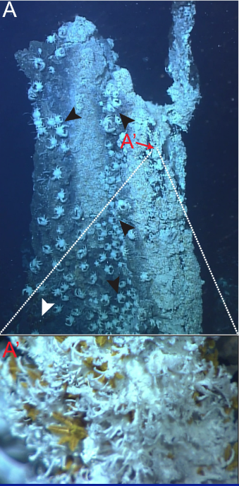 靠近熱液噴口的赫斯帕拉爾文氏蠕蟲近景圖