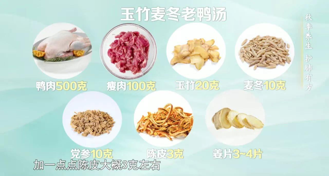 秋季五行屬金 與人體臟腑中的肺相對應(yīng) 秋季是養(yǎng)肺的最佳時節(jié) 養(yǎng)肺不僅能增強(qiáng)秋季的健康 還能為冬季打下堅(jiān)實(shí)的基礎(chǔ) 秋季口干咽干、咳嗽、流感 幫你科學(xué)應(yīng)對、正確養(yǎng)肺 秋季養(yǎng)肺正當(dāng)時 肺有四怕 1.肺怕燥 秋季逐漸轉(zhuǎn)為干燥,易耗傷津液。 津液不足的癥狀:口渴、口干舌燥、咳、大便干、口唇干裂、皮膚干、眼干等。 深秋時節(jié),寒氣加重,燥邪與寒邪結(jié)合,表現(xiàn)為怕風(fēng)、怕冷、喉嚨癢、干咳等。 采用溫潤的方法來補(bǔ)肺潤肺。 2.肺怕寒 寒邪最易經(jīng)口鼻犯肺,使肺氣不得發(fā)散,誘發(fā)感冒、鼻炎等呼吸道疾病。 3.肺怕熱 中醫(yī)講“肺為嬌臟”,它既怕寒又怕熱,肺受熱后容易出現(xiàn)咳嗽、痰黏難咳、煩躁不安,容易流鼻血等癥狀。如果肺胃熱盛,還可能導(dǎo)致面部起痘等。 4.肺怕悲 過度悲哀或憂愁,肺氣郁結(jié)、呼吸不暢、宣降失調(diào),保持積極樂觀的心態(tài),對保護(hù)肺臟是極為重要的。 秋季養(yǎng)肺護(hù)肺非常重要,需根據(jù)不同癥狀采取相應(yīng)的調(diào)理方法,及時補(bǔ)充津液,防止燥邪和寒邪的侵襲。 玉竹:滋陰養(yǎng)顏的良藥 如果您秋季遇到了口干、咽干、皮膚干等干燥問題,這很有可能是燥邪侵體,津液缺失導(dǎo)致的,這個時候不妨試試用玉竹來進(jìn)行緩解。 玉竹,這味藥食同源的佳品,不僅能養(yǎng)陰潤燥,還能生津止渴,是秋季潤燥的理想選擇。 這幾類人群不適合長期食用玉竹:痰濕體質(zhì);脾胃虛弱者;風(fēng)寒感冒咳嗽患者;孕婦。 如果你不屬于上述禁忌人群,不妨試試以下幾種玉竹的食療方法吧! 1.玉竹麥冬飲 功效:當(dāng)茶水飲用,可滋陰潤肺,祛燥邪的同時補(bǔ)氣。 材料:玉竹20克、麥冬10克、黨參10克。 做法:將三種藥材用水洗凈,加水煮沸,煮約20~30分鐘。 2.玉竹麥冬老鴨湯 功效:這道湯不僅能滋陰潤肺、補(bǔ)氣,還能溫養(yǎng)脾胃。 材料:鴨肉500克、瘦肉100克、玉竹20克、麥冬10克、黨參10克、陳皮3克、姜3~4片、鹽少許。 做法:將鴨肉和瘦肉洗凈,切成小塊焯水;玉竹和麥冬用水泡10分鐘;將所有材料放入鍋中煮沸,煮約40分鐘至1小時。