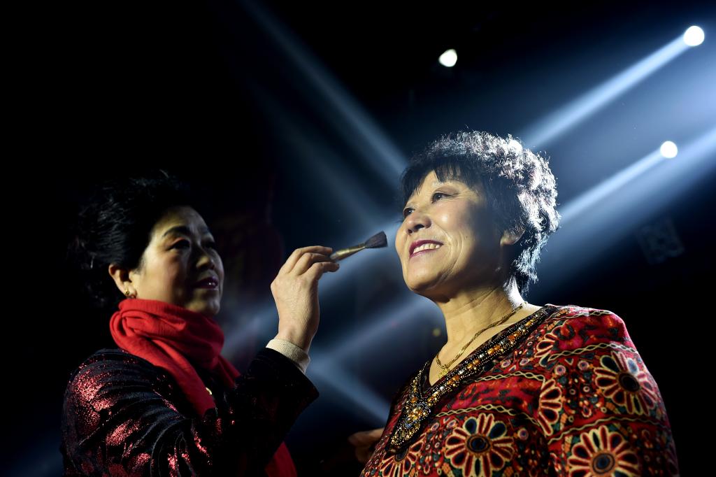 ↑1月3日,山西省渾源縣貧困山區(qū)合唱團團員們在化妝。