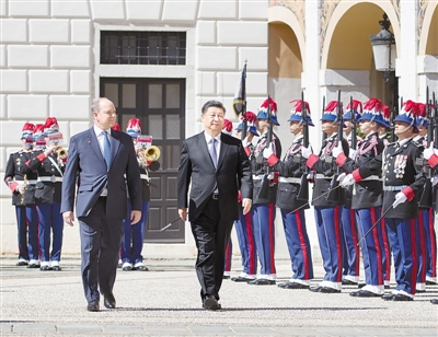 3月24日,國家主席習(xí)近平同摩納哥親王阿爾貝二世舉行會(huì)談。會(huì)談前,阿爾貝二世親王為習(xí)近平舉行隆重歡迎儀式。