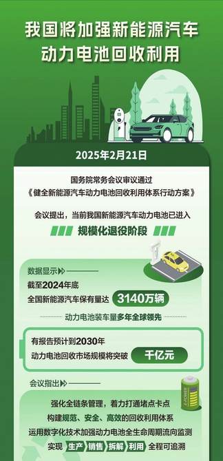 21日召開的國(guó)務(wù)院常務(wù)會(huì)議,審議通過(guò)《健全新能源汽車動(dòng)力電池回收利用體系行動(dòng)方案》。會(huì)議指出,當(dāng)前我國(guó)新能源汽車動(dòng)力電池已進(jìn)入規(guī)模化退役階段,全面提升動(dòng)力電池回收利用能力水平尤為重要。