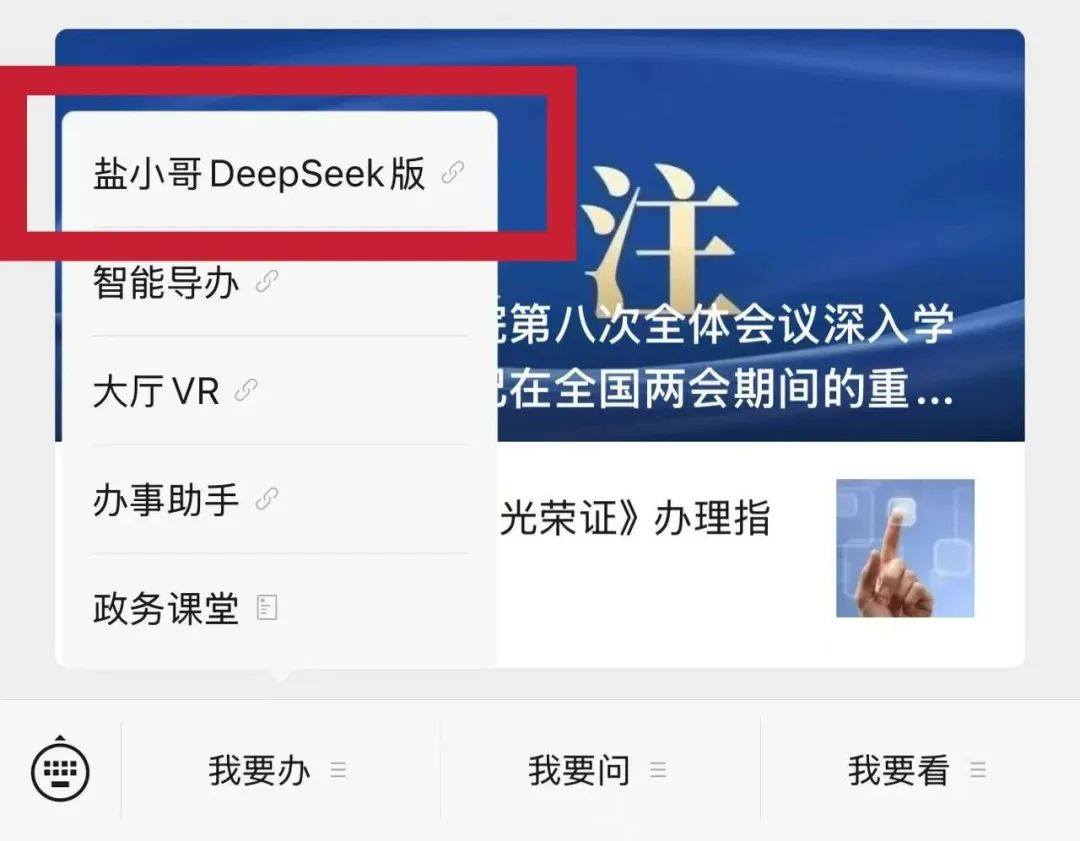 據(jù)介紹,市民只需進(jìn)入“鹽湖之家”微信公眾號,通過下方菜單欄的“我要辦”選擇“鹽小哥”DeepSeek版智能客服,便可與智能客服進(jìn)行交流互動,享受“AI導(dǎo)辦員”的智能導(dǎo)辦服務(wù)。