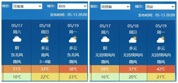 省會城市中,西安、鄭州18日至19日最高氣溫也將達(dá)到38℃以上。