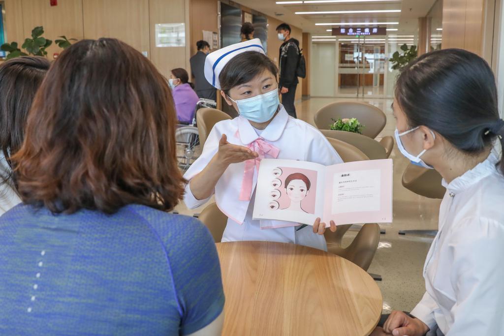 北京協(xié)和醫(yī)院南丁格爾護(hù)理志愿服務(wù)隊成員正在進(jìn)行醫(yī)美科普宣教。新華社記者 張玉薇 攝