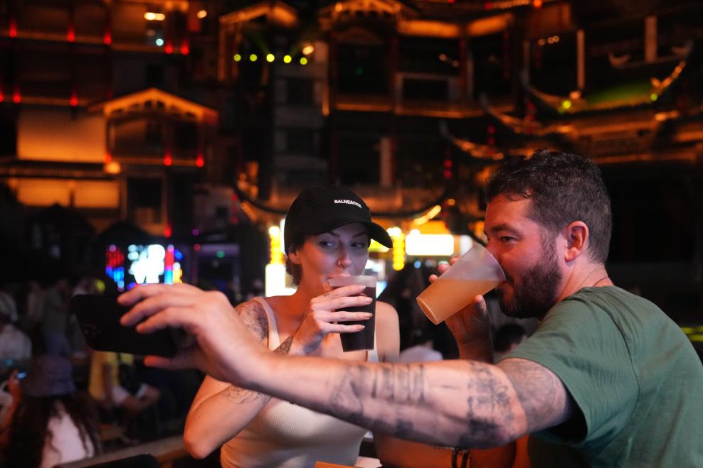 5月20日,澳大利亞游客在張家界市七十二奇樓景區(qū)合影。隨著一系列入境便利政策措施的實施,越來越多外國游客來到湖南張家界探尋山水人文之美。新華社記者 薛宇舸 攝