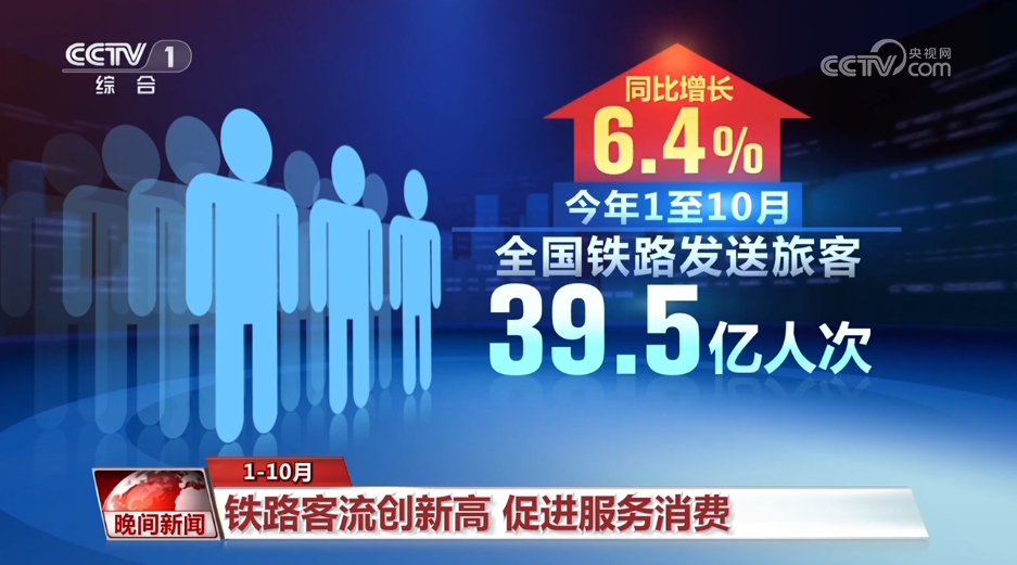 國(guó)鐵集團(tuán)11月17日發(fā)布的數(shù)據(jù)顯示,今年1至10月,全國(guó)鐵路發(fā)送旅客39.5億人次,同比增長(zhǎng)6.4%,客流總量和單日客流量均創(chuàng)歷史新高。