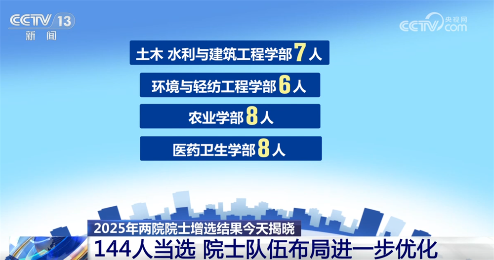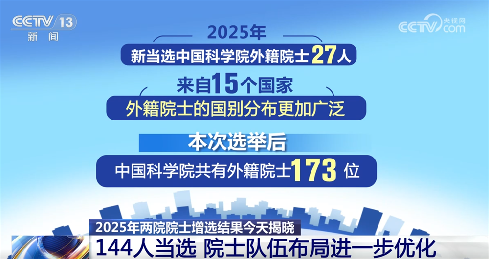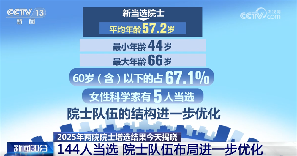 央視網(wǎng)消息:11月21日,2025年兩院院士增選結(jié)果正式揭曉,共有144人當(dāng)選,院士隊伍的年齡結(jié)構(gòu)、學(xué)科、地區(qū)和行業(yè)布局進(jìn)一步優(yōu)化。