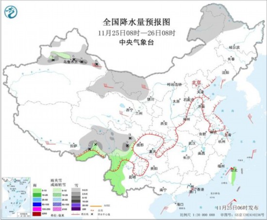 全國降水量預報圖(11月25日08時-26日08時)