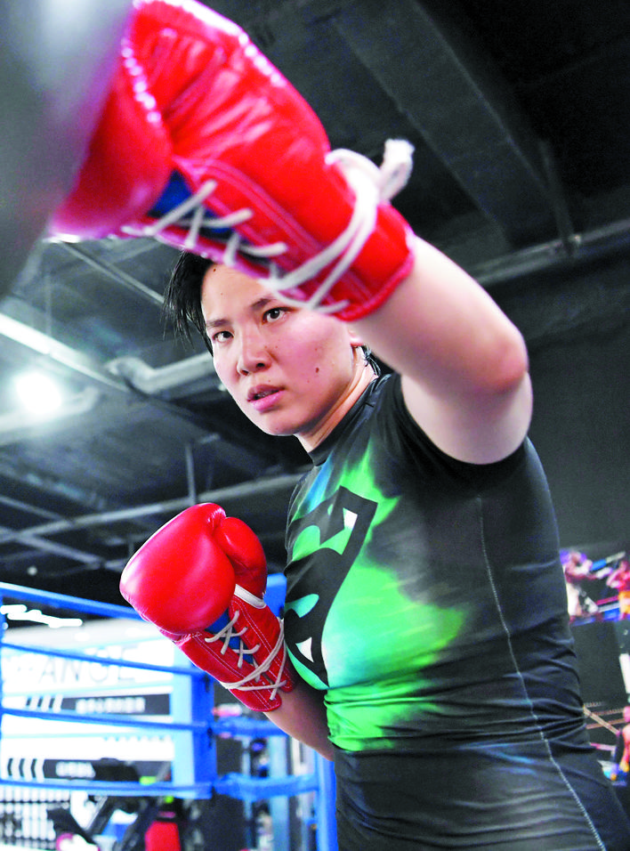 “面對的全是男拳手,剛開始的時候經(jīng)常鼻青臉腫?!彪m然在力量、體能和抗擊打能力方面比較吃虧,但是要強的性格讓薛金玉選擇了堅持,“喜歡容易堅持難,我不能放棄,不能被男拳手小瞧。”