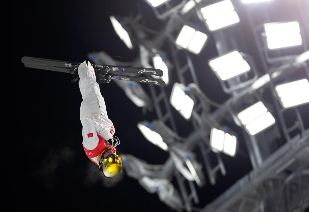 2月15日,中國選手齊廣璞在北京冬奧會自由式滑雪男子空中技巧資格賽中。新華社記者費(fèi)茂華攝