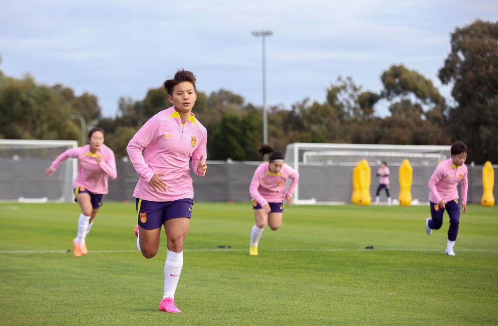 7月10日,中國隊球員王霜(左二)在訓練中。新華社發(fā)(謝思達攝)