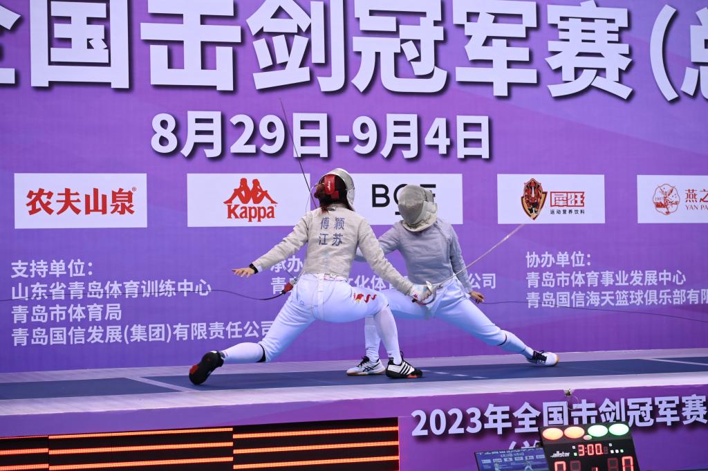 江蘇隊(duì)傅穎(左)在比賽中。(圖片來自中國(guó)擊劍協(xié)會(huì))