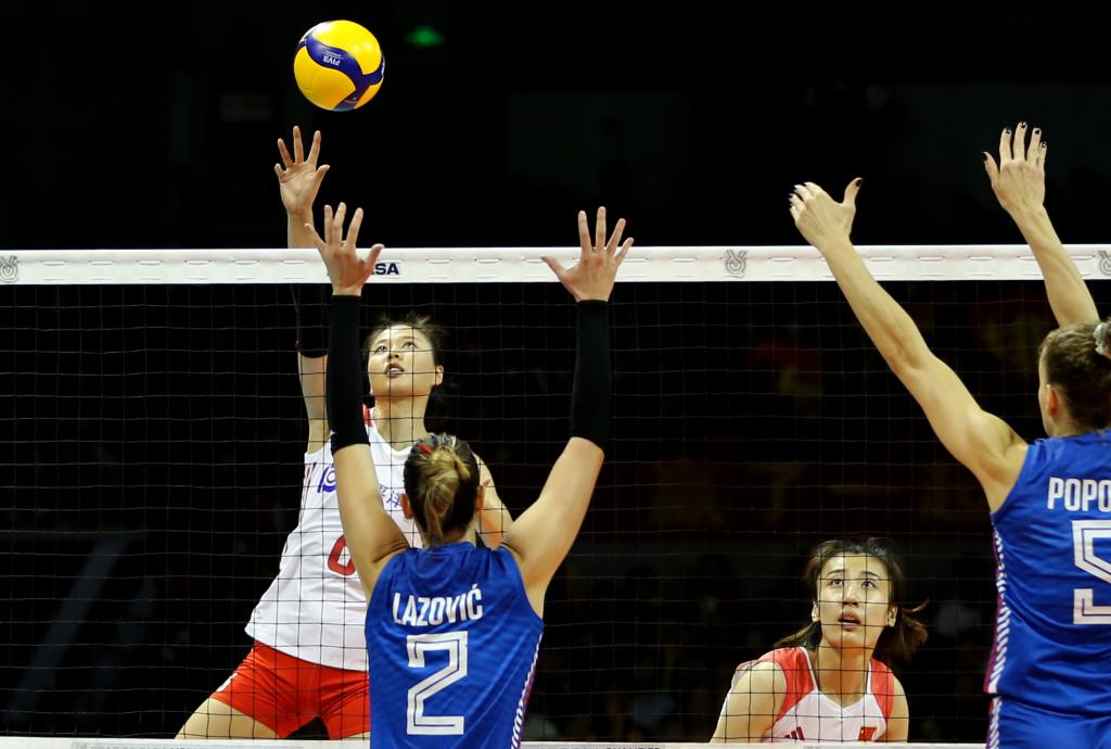 首局大部分時(shí)間雙方打得比較膠著。局末階段,塞爾維亞隊(duì)調(diào)整了攻手組合,打出一波4:1的攻勢,將分差拉開。雖然王媛媛將比分扳至23:23平,但中國隊(duì)仍以23:25丟掉第一局。
