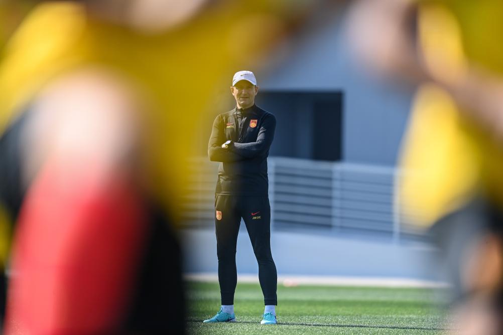1月11日,中國隊主教練揚科維奇觀摩球隊訓(xùn)練。新華社記者江漢攝