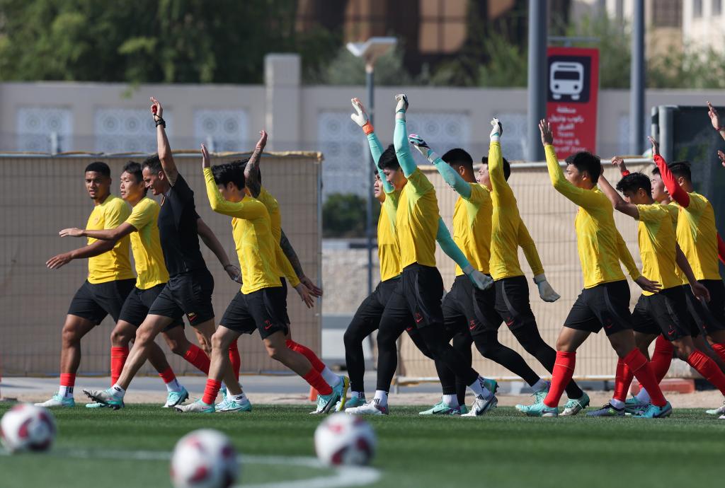 1月11日,中國男足隊員在卡塔爾多哈進(jìn)行訓(xùn)練,備戰(zhàn)將于1月12日開賽的卡塔爾男足亞洲杯。新華社記者丁汀攝