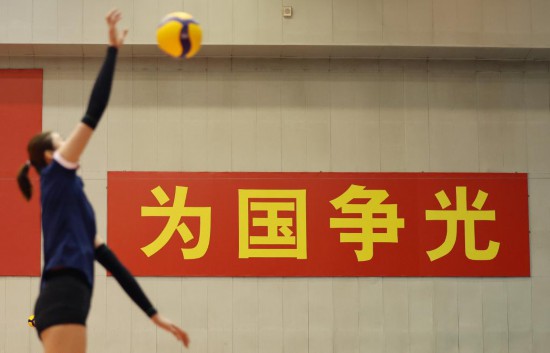 2月22日,中國女排球員在訓(xùn)練中。新華社記者賈浩成攝
