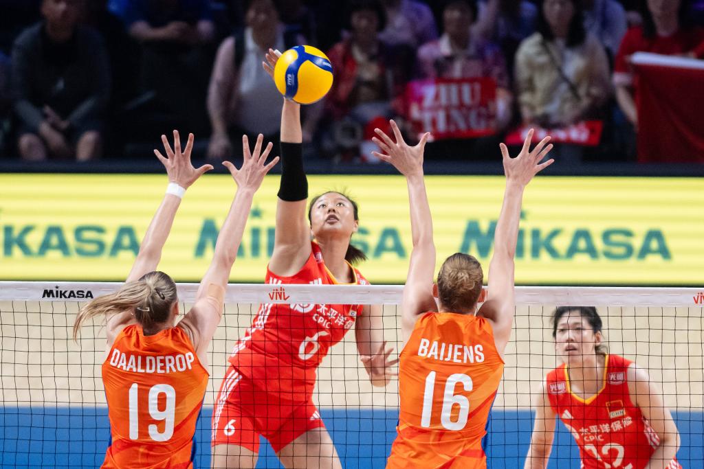 首局比賽中國隊(duì)失誤較多,荷蘭隊(duì)取得13:6的領(lǐng)先。中國隊(duì)請求暫停后迅速調(diào)整狀態(tài),一度將分差縮小至3分,但最終還是以21:25告負(fù)。第二局,中國隊(duì)在開局落后的情況下依靠多點(diǎn)進(jìn)攻在后半段反超比分,以25:23扳平大比分。士氣大振的中國女排在接下來的比賽中掌握了主動(dòng),進(jìn)攻更加積極,以25:23、25:21連下兩局贏得勝利。