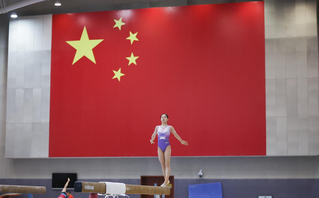 5月8日,中國體操隊(duì)隊(duì)員歐鈺珊在訓(xùn)練中。新華社記者 曹燦 攝