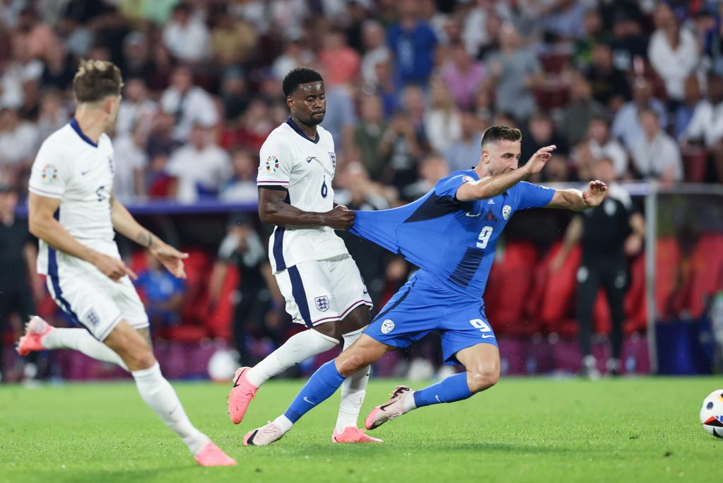 6月25日,英格蘭隊(duì)球員格希(中)在比賽中犯規(guī)。當(dāng)日,在德國科隆進(jìn)行的2024歐洲足球錦標(biāo)賽C組第三輪比賽中,英格蘭隊(duì)0比0戰(zhàn)平斯洛文尼亞隊(duì)。新華社記者 白雪飛 攝 當(dāng)強(qiáng)隊(duì)表現(xiàn)未達(dá)最佳,那些在賽前不被看好的球隊(duì)卻不斷給球迷帶來驚喜。第一次參加歐錦賽的“新軍”格魯吉亞隊(duì),在小組賽末輪2:0“逆襲”提前出線、以替補(bǔ)陣容出戰(zhàn)的葡萄牙隊(duì),爆冷闖入16強(qiáng)。再加上力壓法國與荷蘭隊(duì)、獲得D組第一的奧地利隊(duì),隊(duì)史第二次晉級淘汰賽階段的斯洛伐克隊(duì),韌性十足的羅馬尼亞隊(duì),第二次參加歐錦賽的斯洛文尼亞隊(duì),這些有“黑馬面相”的球隊(duì)在獲得16強(qiáng)席位后,能否繼續(xù)帶來冷門,將是一大看點(diǎn)。