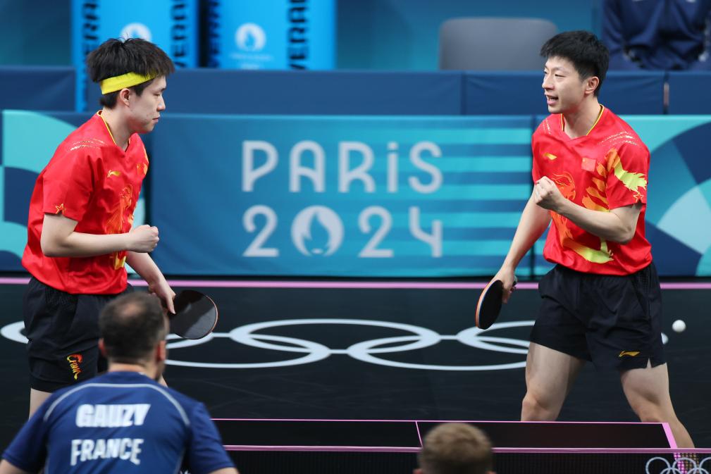 8月8日,中國(guó)組合馬龍(右)/王楚欽在比賽中。新華社記者 劉續(xù) 攝