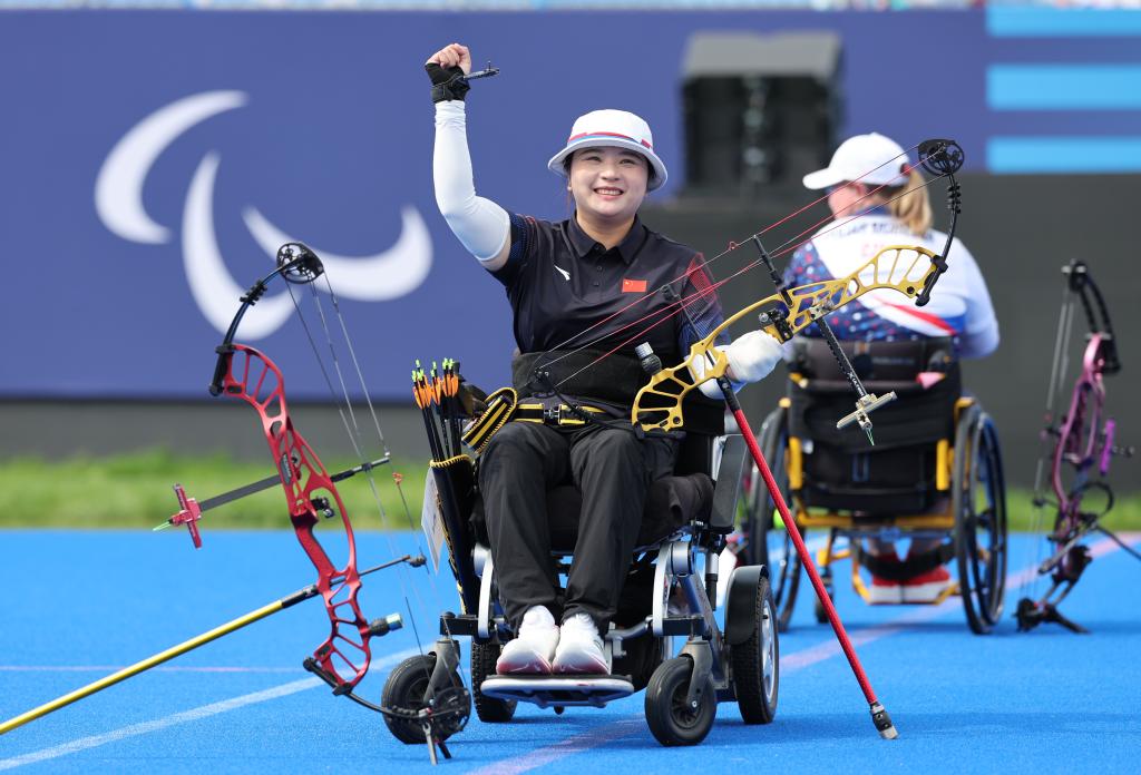張?zhí)祧螞Q賽最后一箭射出7環(huán),讓一直心態(tài)波瀾不驚的陳敏儀坦言稍有浮動?!翱吹?的時候,我心里在想這一根箭我必須打死?!彼f話聲音不大,語氣卻堅定有力。9環(huán),勝利到手,該項目殘奧會紀錄也被刷新到147環(huán)。