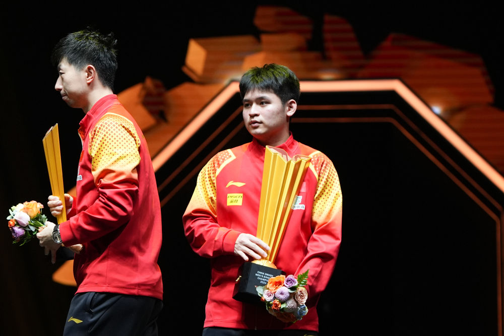 新華社北京10月6日電(記者郁思輝、胡佳麗)2024年世界乒乓球職業(yè)大聯(lián)盟(WTT)中國(guó)大滿貫賽6日迎來收官之戰(zhàn)。男單賽場(chǎng)上,林詩(shī)棟以4:3戰(zhàn)勝馬龍奪冠,但收獲亞軍的馬龍已經(jīng)可以“帶著微笑離開”。世界排名第一的孫穎莎則以4:2擊敗王曼昱,收獲女單冠軍。