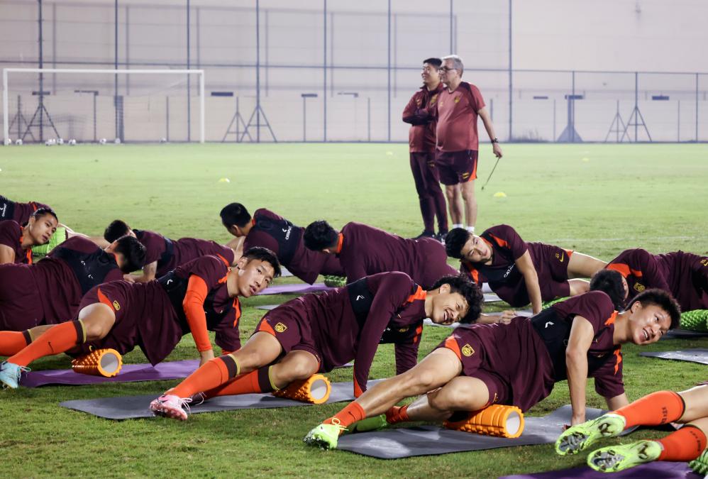 為了在客場(chǎng)拿出最好的狀態(tài),中國(guó)隊(duì)提前一周飛赴阿聯(lián)酋迪拜組織集訓(xùn),適應(yīng)西亞的氣候和時(shí)差。但在迪拜訓(xùn)練期間,主力前鋒武磊的膝蓋傷勢(shì)不見好轉(zhuǎn),只能提前離隊(duì)。此外,原本入選27人大名單的主力邊鋒費(fèi)南多和邊后衛(wèi)高準(zhǔn)翼因受傷未能隨隊(duì)出征。主力中后衛(wèi)蔣光太也有小傷在身。