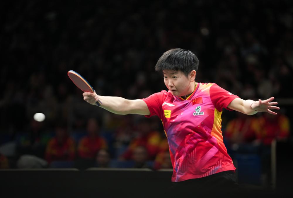 12月3日,中國(guó)隊(duì)選手孫穎莎在女單比賽中。新華社記者 江宏景 攝