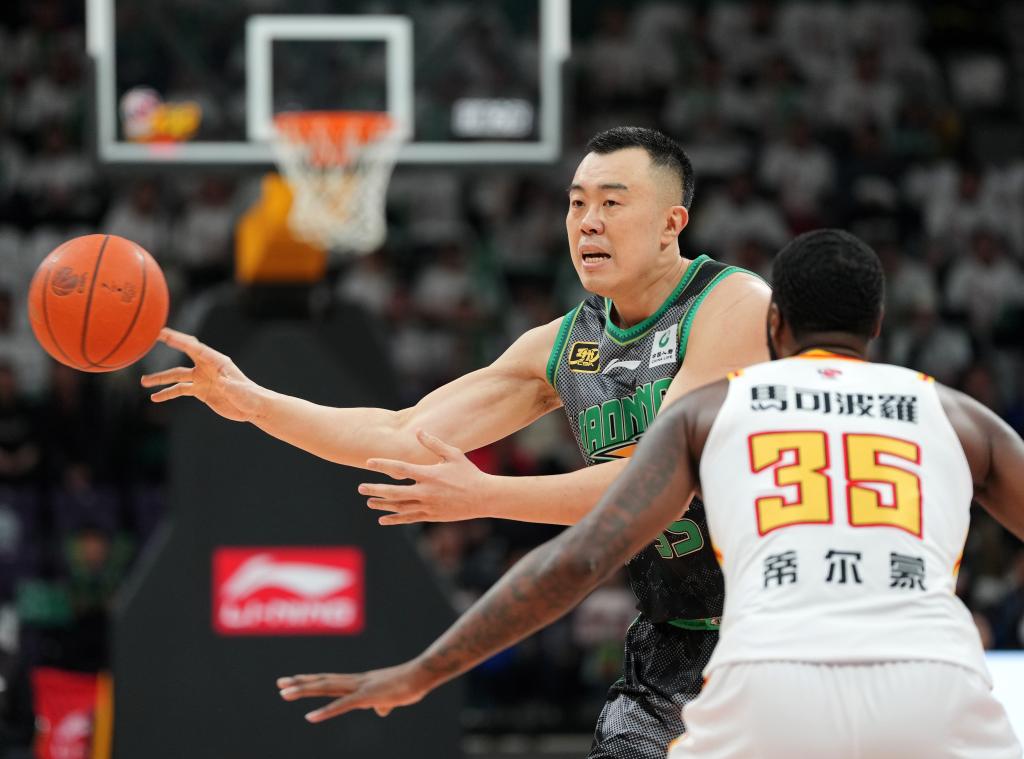 3月19日,遼寧隊球員韓德君(左)在比賽中傳球。新華社記者 李鋼 攝