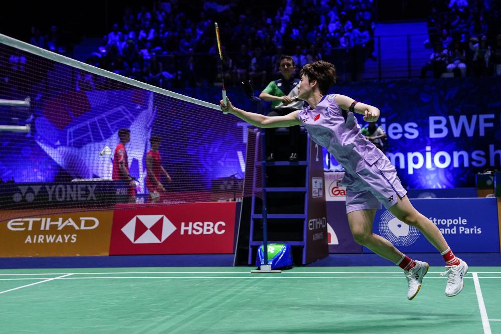 8月28日,陳雨菲在比賽中回球。 新華社記者 彭子洋 攝