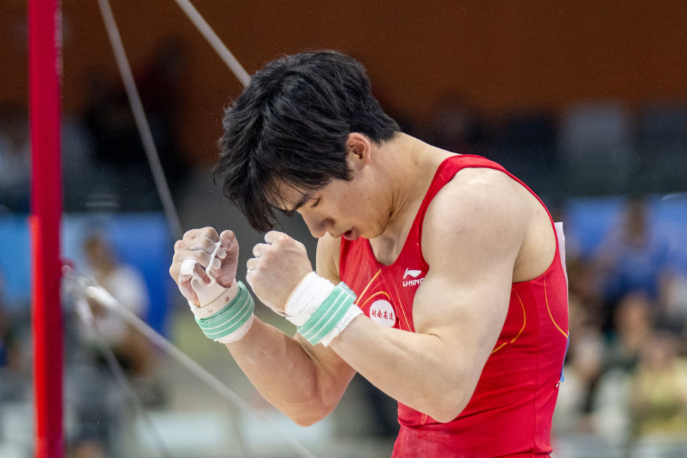 體操賽場,湖南名將張博恒在幾次沖金受挫后,以一套干凈利落的動作問鼎男子單杠;四川隊(duì)鄒敬園則加冕男子雙杠。