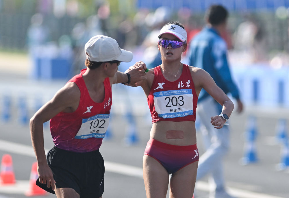 在全運(yùn)會首次設(shè)立的馬拉松競走混合接力中,18歲的石升吉與29歲老將楊家玉攜手,為北京隊(duì)贏得該項(xiàng)目歷史首金。