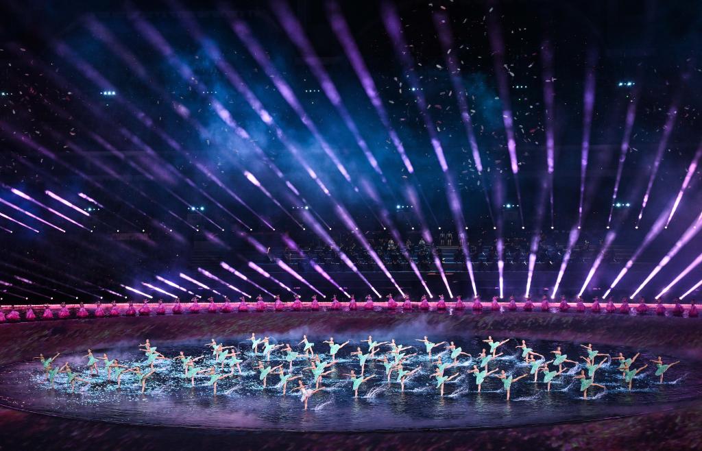 11月9日,第十五屆全國運動會開幕式在廣東奧林匹克體育中心舉行,圖為演員在開幕式現(xiàn)場表演。新華社記者 燕雁 攝