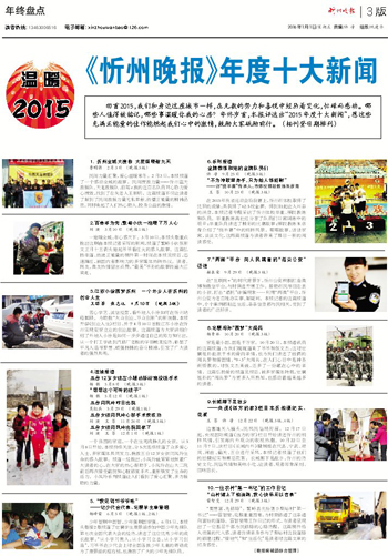 回首2015,我們和身邊這座城市一樣,在無數(shù)的努力和喜悅中經(jīng)歷著變化,忙碌而感動(dòng)。哪些人值得被銘記,哪些事溫暖你我的心房?年終歲首,本報(bào)評選出“2015年度十大新聞”,愿這些充滿正能量的佳作能燃起我們心中的激情,鼓勵(lì)大家砥勵(lì)前行。(按刊登日期排列)