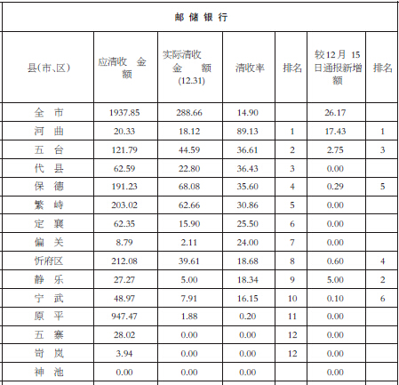 忻州集中清收農(nóng)村信用社郵儲(chǔ)銀行