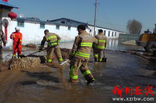 2月17日中午,市消防支隊特勤中隊接到指揮中心調(diào)派命令稱:曹張鄉(xiāng)中曹張村發(fā)洪水,需立即前往進行處置。警情就是命令,中隊立即出動2輛消防車和12名指戰(zhàn)員趕赴現(xiàn)場。