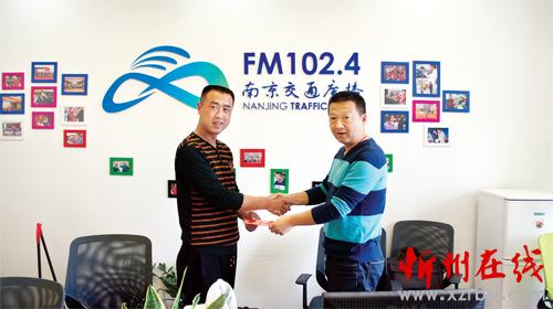 4月7日,在南京交通廣播“智勇在線”節(jié)目組,來自忻州市定襄縣的智杰(左)和主持人智勇在一起,并受到了該媒體的贊譽(yù)與獎勵(劉捷 攝)