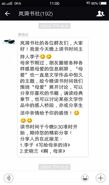 嵐漪書(shū)社群線上“讀書(shū)時(shí)間” (責(zé)任編輯:李冬梅) |