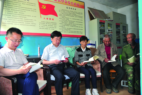 劉桂珍與鄉(xiāng)領導一塊組織黨員開展“兩學一做”學習教育工作