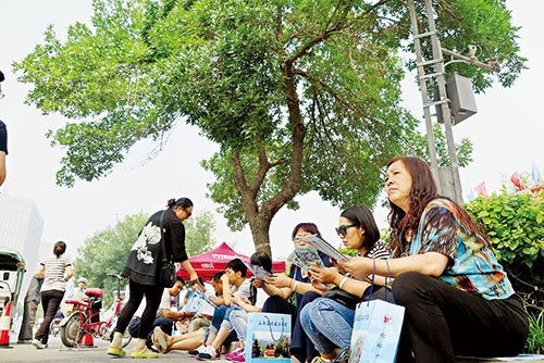 考場(chǎng)外家長(zhǎng)們焦急地等待著