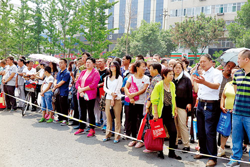 考場(chǎng)外家長(zhǎng)們默默為考生加油祝福